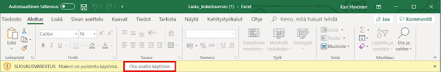 Kun lataat tämän excel pohjan ota ensi muokkaus käyttöön